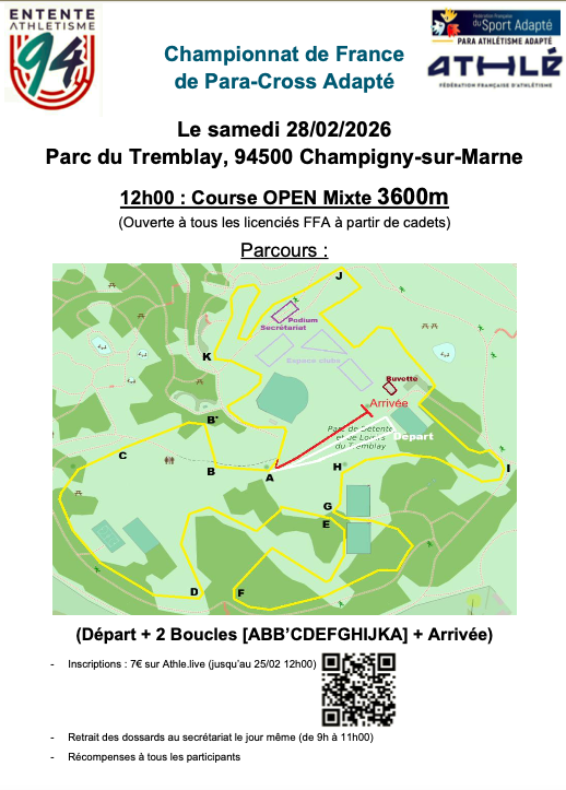 3.6km open FFA dans le cadre des championnats de France de para Cross Sport Adapté