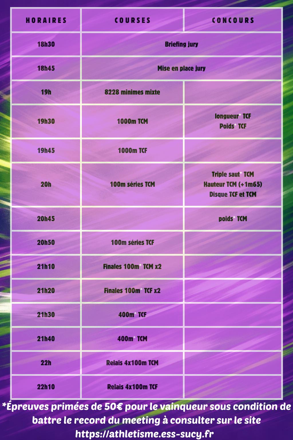 - 21h20 Finale 100m TCF x 2